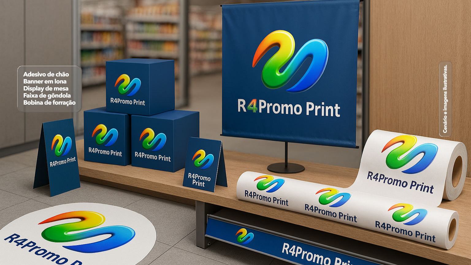 "A R4 Promo Print, é especialista em comunicação visual e marketing promocional, oferecendo soluções criativas e de alto impacto para destacar sua marca. Desenvolvemos materiais para PDV como displays, adesivos e faixas de gôndola, além de impressos promocionais como catálogos, pastas e folders. Também criamos brindes personalizados, como copos, taças, squeezes e canecas, perfeitos para eventos corporativos. Nossa missão é transformar ideias em resultados, unindo qualidade, design e inovação em cada projeto. Com mais de 30 anos de experiência, superamos expectativas ao entregar soluções sob medida com excelência e impacto."