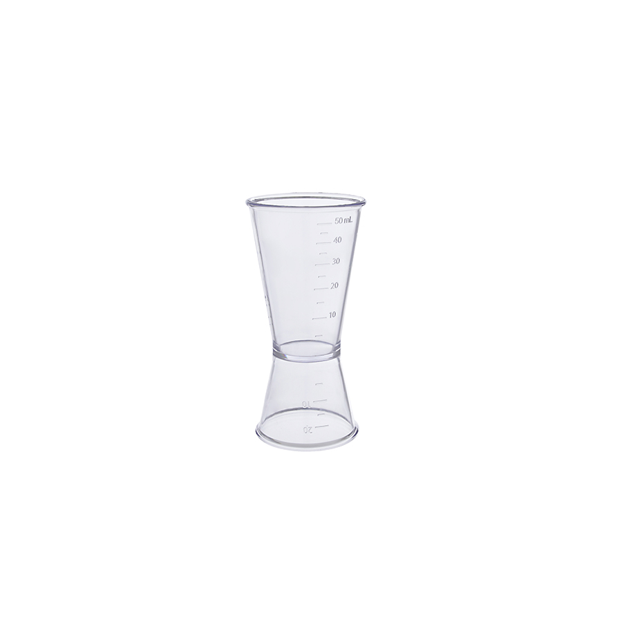Jigger medidor duplo 60ml graduado, preciso e fácil de limpar. Personalize com Silk ou Transfer para brindes e ações promocionais.