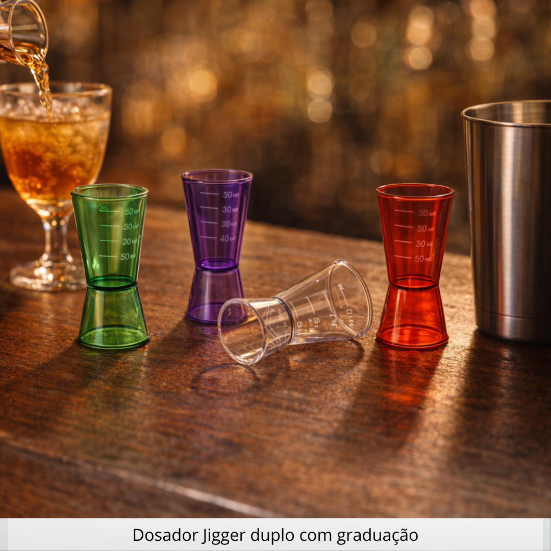 O jigger é um item muito procurado por quem pesquisa por medidor para drinks, jigger 60ml, dosador duplo e dosador graduado. Ele se encaixa perfeitamente em: