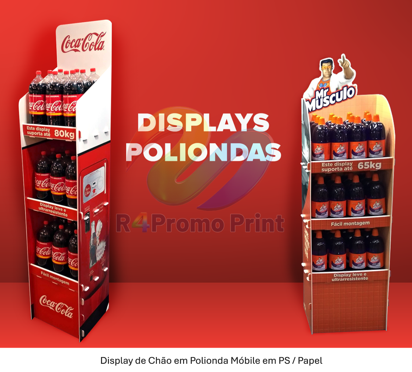 “Display de Chão em Polionda Móbile: leve, resistente e personalizado. Ideal para PDV, fácil de montar e reposicionar.