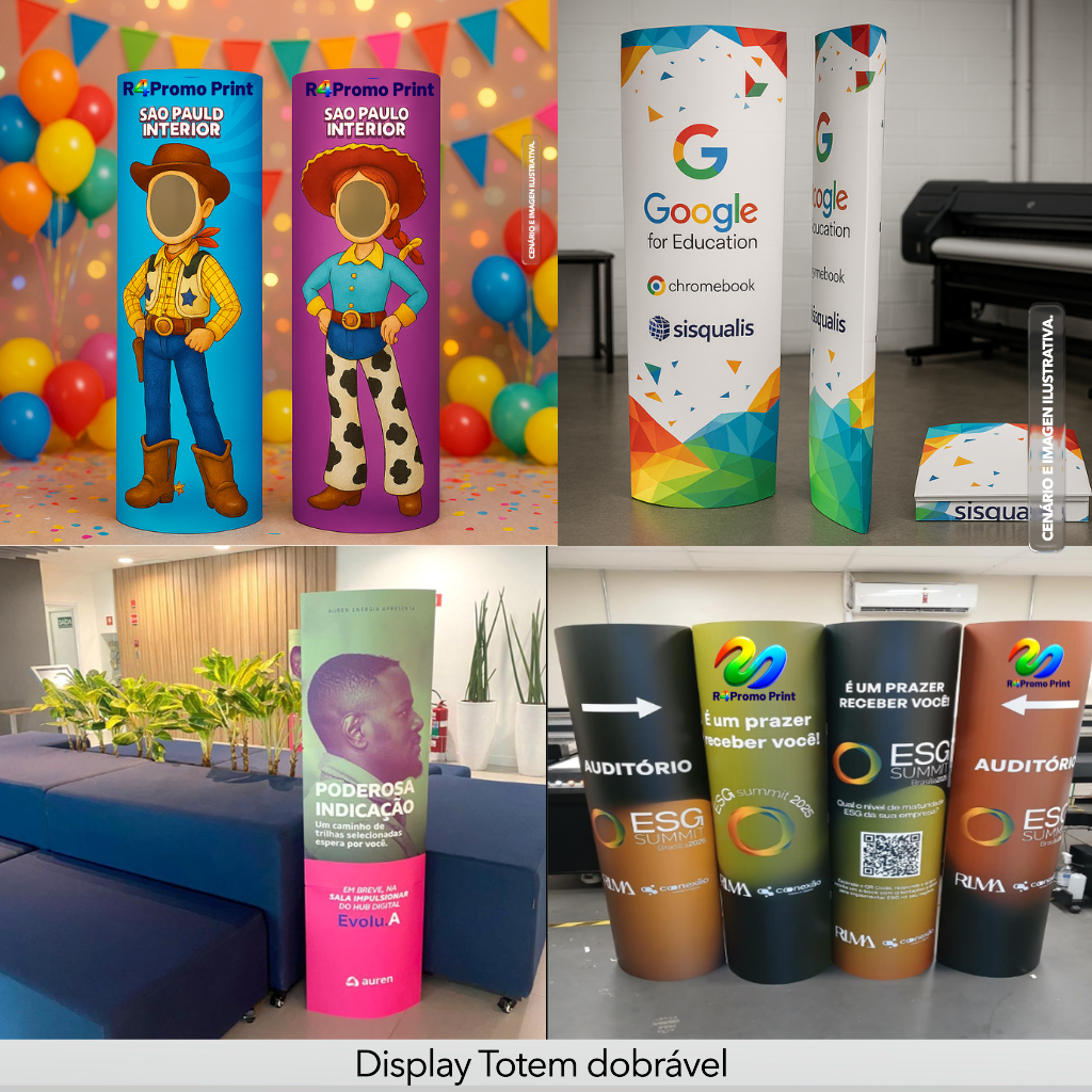 Totem display dobrável para PDV: portátil e reutilizável. Montagem rápida transporte fácil e personalização para promoções, ações e eventos no varejo.