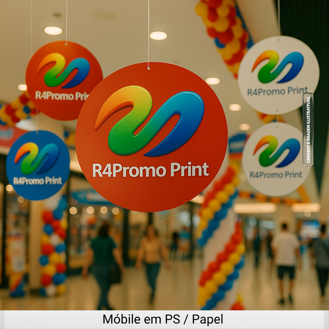 O mobile promocional em PS ou papel é uma solução eficiente para comunicação aérea no ponto de venda, criando impacto visual imediato e ampliando a visibilidade da marca em áreas de grande circulação.