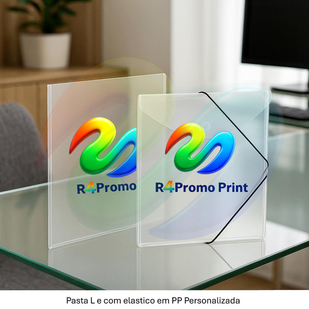 A R4 Promo Print desenvolve pastas em PP personalizadas com acabamento profissional, qualidade de impressão e foco em valorizar a imagem da sua marca.
